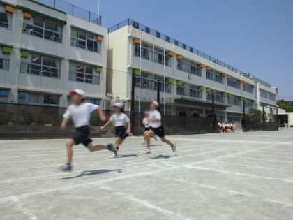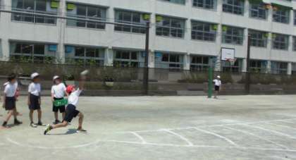 写真は、5年生がソフトボール投げと50m走を計測しているところです。