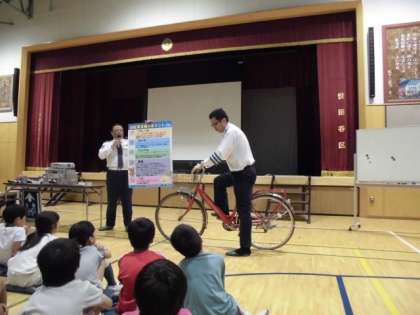 自転車の正しい乗り方や、自転車に乗る前の点検のポイントを、玉川警察署交通課の方から教えていただきました。