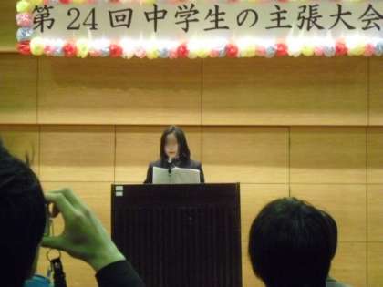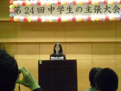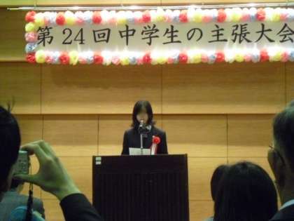 深沢区民センターで、「第24回中学生の主張大会」がありました。深沢中学校と東深沢中学校の生徒が、各町会からの推薦を受けて、発表します。12名の中学生の主張は、人と人とのかかわりや言葉、日本文化、ボランティアなどをテーマに自分の考えを堂々と発表しました。中学生になるとこんなにも堂々と立派に自分の考えが表現できることに感心しました。今の6年生の中からも、来年はこの発表会に参加する子どもたちがでると思います。