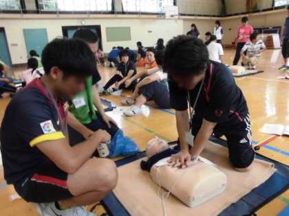 人工呼吸、胸部圧迫、AEDの使い方などを学びました。