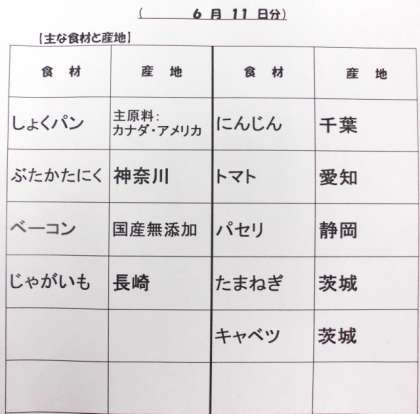 6/11 今日の給食