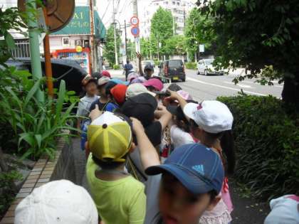 生活科の授業で、「町たんけん」に行きました。今回の目的地は三島公園です。