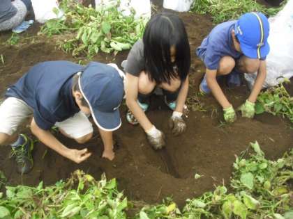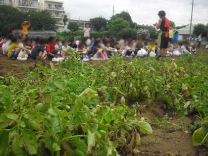 2回の雨天延期を経て、ようやくじゃがいも掘りに行きました。深沢小学校近くの畑です。