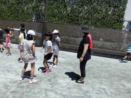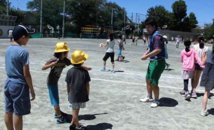 疲れたら休んだり、のどが渇く前に水を飲んだりして、みんなで体調に気を付けて遊びました。