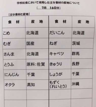 1学期間、美味しい給食を作ってくださいました、日本国民食の調理員のみなさん、ありがとうございました。2学期もよろしくお願いいたします。
