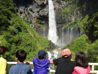 今日は晴天に恵まれ、とてもきれいな滝を見ることができました。滝の凄さにみんな圧倒されているようでした。