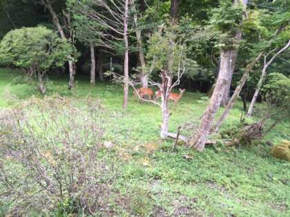 ハイキングから梅屋敷に戻って来ると、なんと庭に鹿がいました!