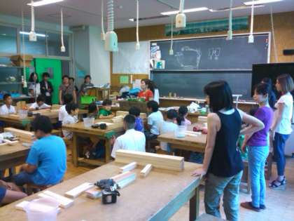 東深沢中学校で、みしまの森学舎の3校の児童・生徒が集まり、プランターをつくります。