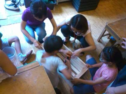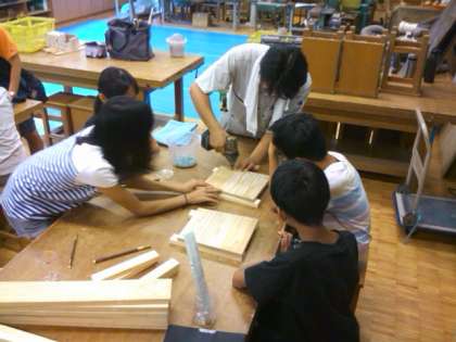今日は本体をつくるために、インパクトドライバーでネジをねじ込んだり、防腐剤を塗ったりしました。