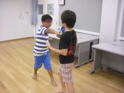 「構え」「受け」「突き」「蹴り」といった基本動作を体験し、「組み手」まで行いました。