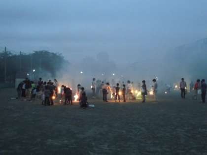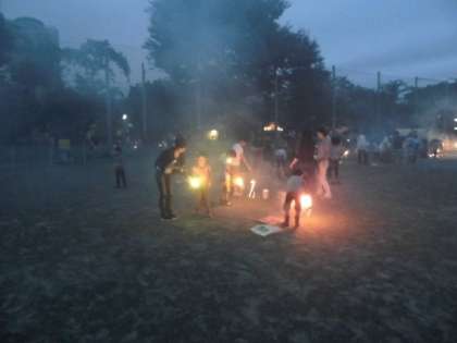 18時より、校庭で遊び場開放運営委員会主催の花火大会が開催されました。