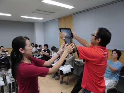 カメラ機能を使っての撮影や保存方法をはじめ、タブレットPCの使い方を学びました。