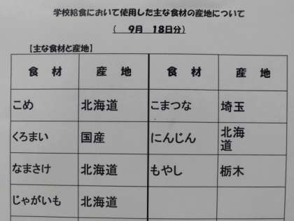 9/18 今日の給食