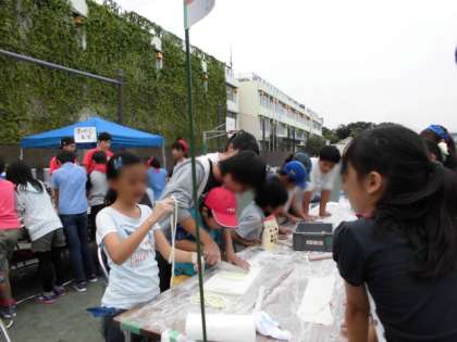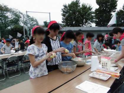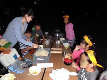 昼間作ってねかせておいた種から、いよいよ手打ちうどんを作ります。続けて、自分たちで具材を切ってカレーも作り、ゆでたてのうどんに掛けて、美味しいカレーうどんが出来ました。