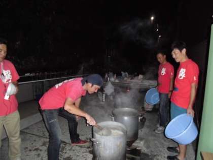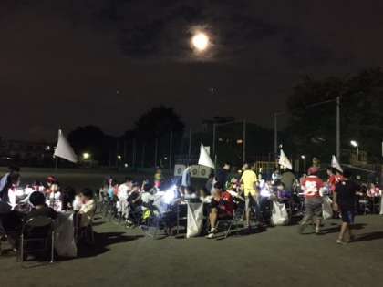 雲間から輝く美しい月夜のもとで、一緒に食べたカレーうどん、みんな「おいしい!」と大満足でした。