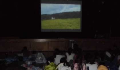 気温が低かったため、最後のイベント「映画会」は体育館で行いました。