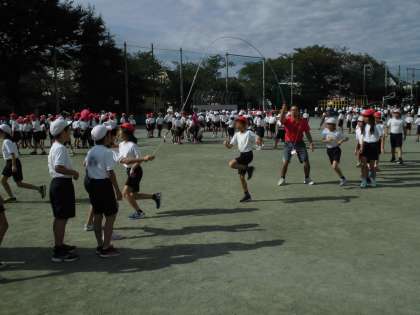 9/24(木)から長なわ月間が始まり、クラスで立てた目標に向かって、心をひとつにして取り組んでいます。本日、体育朝会で第一回長なわ大会を行いました。どのクラスも練習した成果を発揮していました。1年生は大波小波、2年生以上は八の字回せん跳びで、5分間で跳べた回数を計測します。今回は1年4組の208回と6年2組の424回が一番でした。