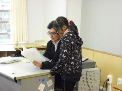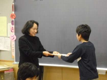 5年生も一人一人に先生がお話をして通知表、終了証を渡しました。