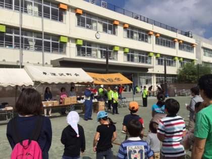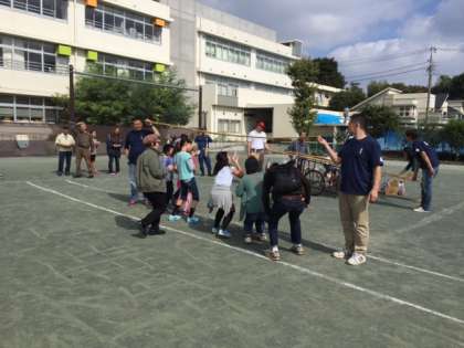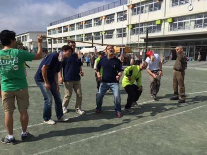 防災運動会最後の競技はパン食い競争でした。終わりに玉川消防署新町出張所長様より講評いただきました。