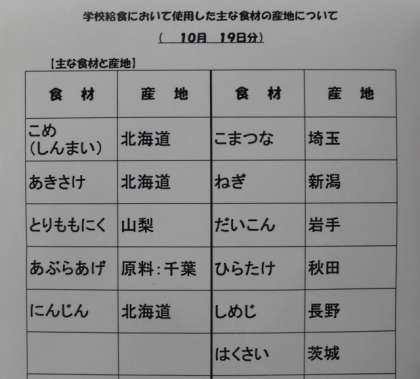 10/19 今日の給食