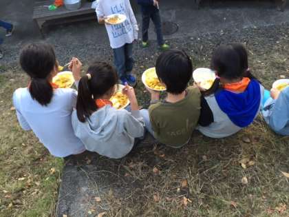 みんなで協力して作ったカレーライスは格別のお味で「めっちゃ美味しいです!」とのことでした。