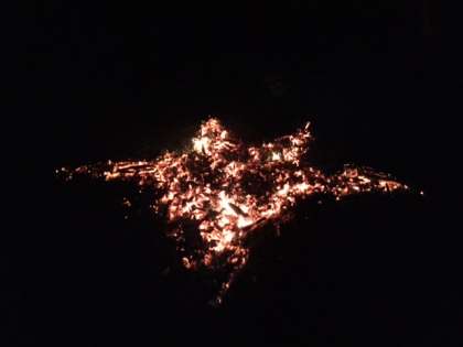 補助員の星野さんが、蒔きの燃えかすで地面に描いてくださった星型が、いつまでも美しく輝いていました。
