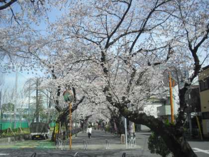 4月になってとても暖かい日です。この暖かさで学校の前の呑川の桜も一挙に咲きました。4月3日土曜日のさくら祭りは、満開になりそうです。