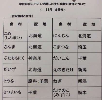 11/6 今日の給食
