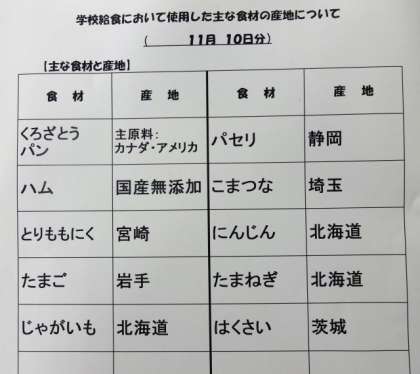 11/10 今日の給食