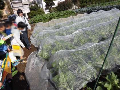 2時間目には、栗山農園に見学に行き、植えてある新鮮な野菜について説明していただきました。農家の人の話や見学から学んだことをこれからの学習に生かしていきます。