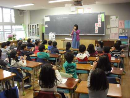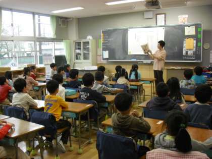 1年生も自分の教室にだいぶ慣れてきました。1組では先生と「ちゃつぼ」の手遊び、2組は先生の読み聞かせ、3組は音楽の教科書を開いてお勉強、1年生が皆、よい姿勢でお勉強していました。さすが、ひがしの1年生です。