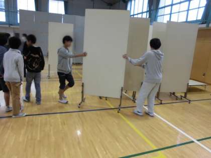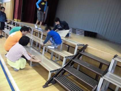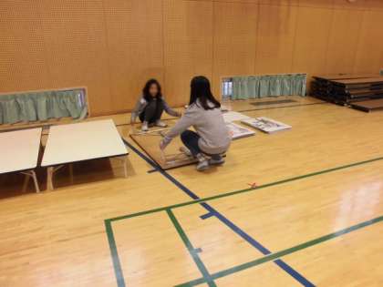 ひな壇を設置したりパネルや机を運んだりと、短時間で手際よく会場づくりをすることができました。6年生の皆さん御苦労さまでした。