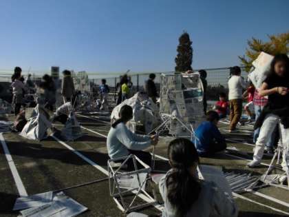 4年生は屋上でスティック状にした新聞紙をベースに、「新聞アドベンチャー」を行いました。