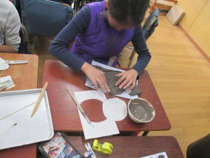 5年生は、中央大学の学生さんの協力を得て、皿づくりに挑戦しました。