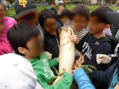 大根の生命力に驚き、育てることや収穫の大変さを知り、一人では出来ないことも友達と助け合うと出来るということを体感できた1日でした。おいしい大根を、各家庭で存分に味わってください。