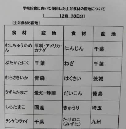 12/10 今日の給食