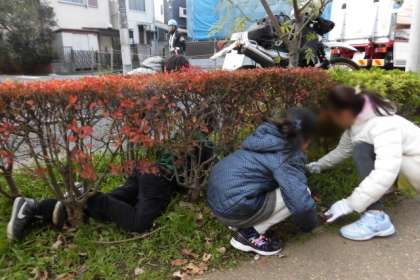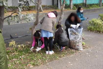 暖かい日ざしの下、地域清掃の一環として、七校二園クリーン作戦を行いました。これは、園芸高校の生徒が考えた企画だそうです。子どもたちは、学校の周りの呑川緑道を園芸高校の高校生やPTAの方と一緒に清掃を行いました。子どもたちの感想には、