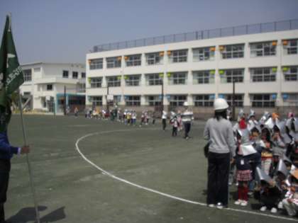 今年度初めての避難訓練です。また、校庭改修が完了してからも初めての訓練です。