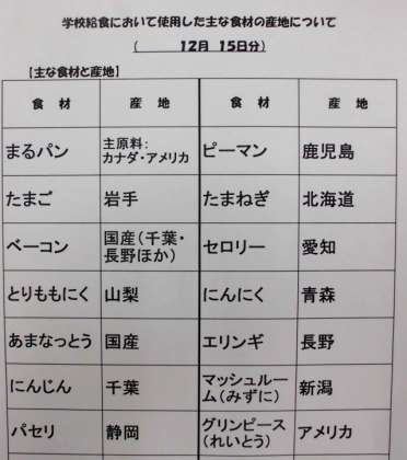12/15 今日の給食
