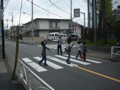 玉川警察署から2名のおまわりさんに来ていただき、学校の周りを歩いて正しく安全な歩き方を教わりました。PTA校外のお母様たちもポイントに立って安全を見守ってくださいました。おまわりさんからのアドバイスは、運転手さんと「アイコンタクト」と道路を歩いていても「目立つ色の服を着る」です。今日学んだことをしっかり守って生活いていきましょう。(2年 深川)
