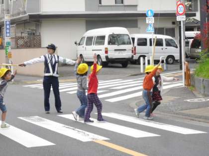 玉川警察署のおまわりさんとPTA校外委員さんたちの協力をいただき「道の歩き方」「横断歩道の渡り方」を学びました。おまわりさんのお話を聞いてから実際に横断歩道を渡って道を歩く練習をしました。「信号が点滅したら渡らない」ことや「信号が青になってもすぐに渡らず左右や後ろを確認して、手を挙げて渡る」ことを学びました。今日学んだことを忘れずに交通安全に気を付けていきましょう。(1年 寺山)