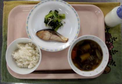今日の給食は、秋田県の代表的な郷土料理「きりたんぽ」でした。給食は大量調理のため、きりたんぽを煮崩さないように別に煮てからクラスの食管に配食しました。スープは鶏がらと削り節からとり、鶏肉や野菜から出た汁のうまみがしみこむような工夫もしました。子どもたちは、初めて食べたという子もいれば、昨日も食べたよ、などさまざまな答えでしたが全体的によく食べていました。初めての献立は、調理員も栄養士も緊張しながらの作業となりますが、無事できあがり、子どもたちもしっかり食べてくれてほっとしました。