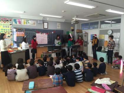 季節がらクリスマスにちなんだお話も多く、工夫を凝らしたコスチュームに身を包んだお母様方が、自前の楽器演奏なども入れてくださっていました。子供たちは、まるで劇を見ているようだと、食い入るように楽しく聴き入っていました。