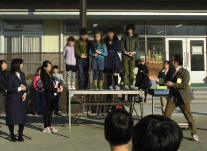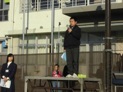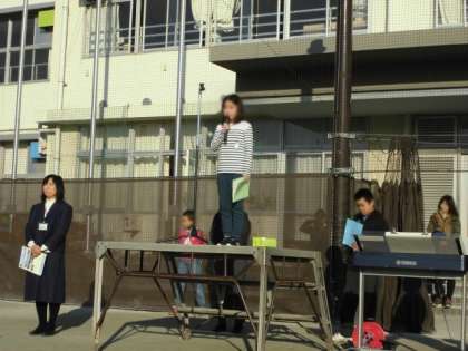 一人ひとり、前の学校名や自分の名前を全校児童の前で話しました。