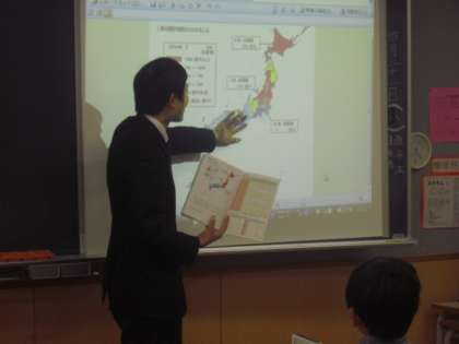 最後まで、子どもたちが夢中で取り組み、45分という時間があっという間にすぎました。今後の社会科の学習に大いに役立つ授業でした。帝国書院の方々、ありがとうございました。(5年 寺崎)