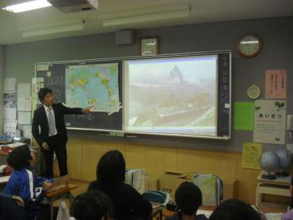 帝国書院の方に3日間続けて地図の授業をしていただきました。今日は3日目、6年生です。世界の国の中からいくつかの国を選び、3つのヒントから、どの国かを当てるクイズをしました。地図の索引の使い方や地形の見方を教わりました。