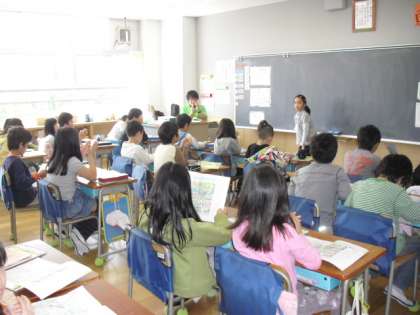 3組は、「国語」スピーチです。友だちのお話を上手に聞くことがめあてです。上手にスピーチできるようになるには、聴き手がしっかりと話を聴くことが大切です。
