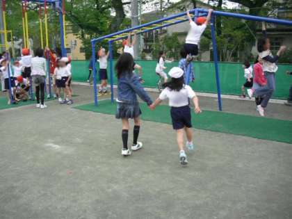 中休みには、校庭でたくさんの子どもたちが歓声をあげて遊んでいます。