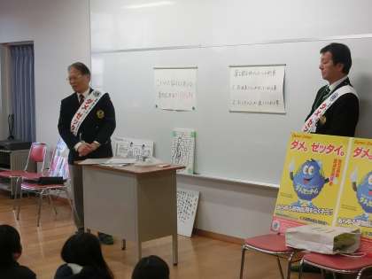 「薬物はダメ 絶対」を合言葉に薬物の危険性について詳しく説明していただきました。ライオンズクラブの方からの問いかけに対して子どもたちは、「薬物の怖さが改めてわかった。」「薬物は絶対しないようにする。」と発言していました。強い心をもち薬物に手を出さないことを決意しました。