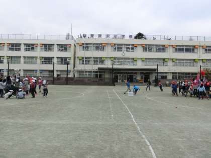 今日の4時間目、異学年交流の一つとして6年1組と3年1組でミニミニ運動会を行いました。